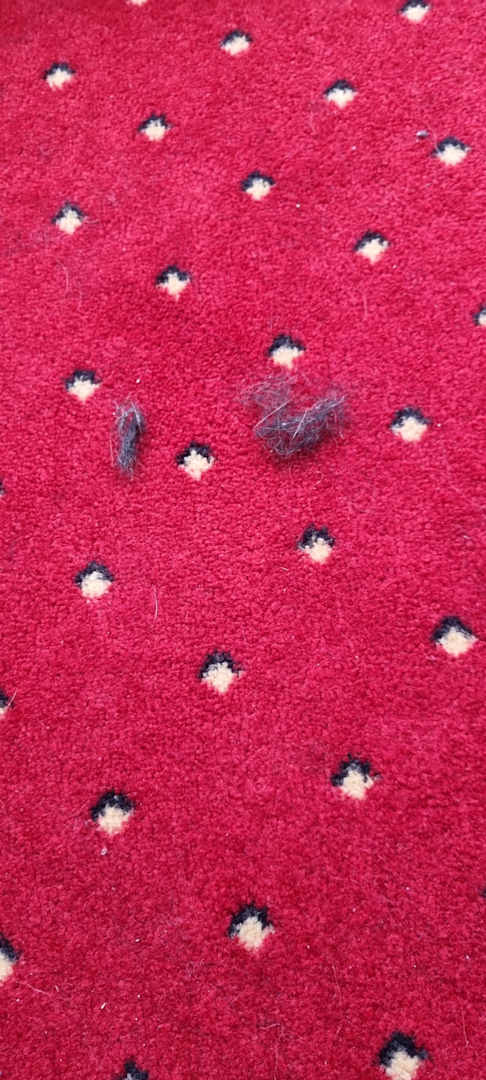 Hundehaare überall auf dem Teppich, hier einmal etwas angehäuft. ist 3 Tage nicht aufgefallen.