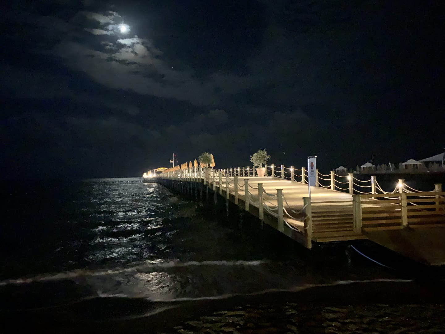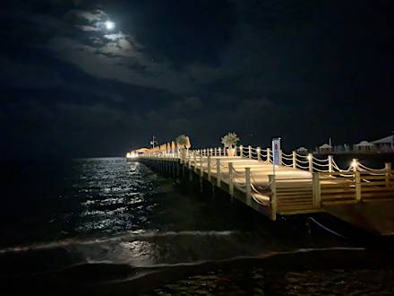 Hoteleigener Steg mit Bar und Sonnenliegen