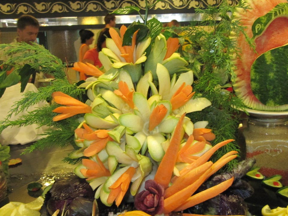 Beim Abendessen kann man den Koch bei der Gestaltung von solchen Schönheiten zu sehen.