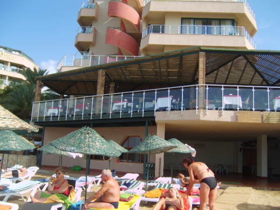 Außenansicht vom Meer mit Hotel-Strand