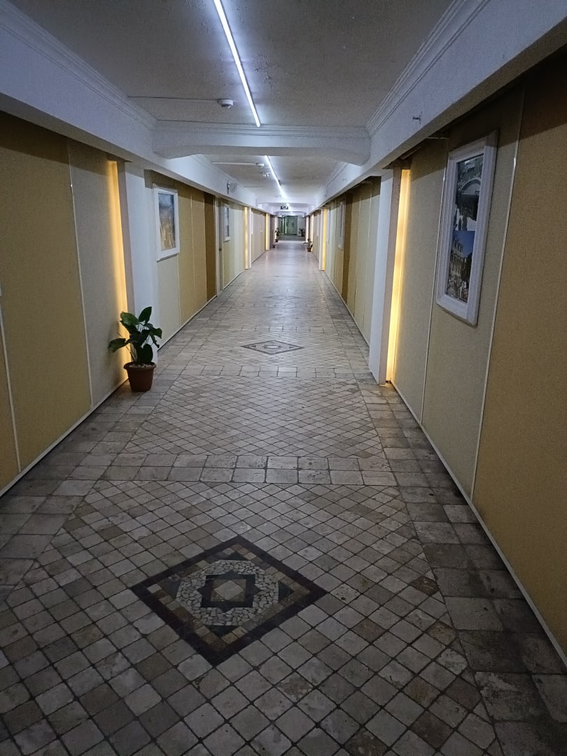 Das Nebengebäude ist mit dem Hauptgebäude durch einen Tunnel unter der Straße verbunden.