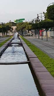 Diese schöne Promemade führt zum Hoteleigenen Strand (400 mtr.) mit Strandbar & Strandliegen Im Hintergrund sieht man einen (öffentlichen?) gerade fertig gestellten "Wasser- Park, -Rutschen