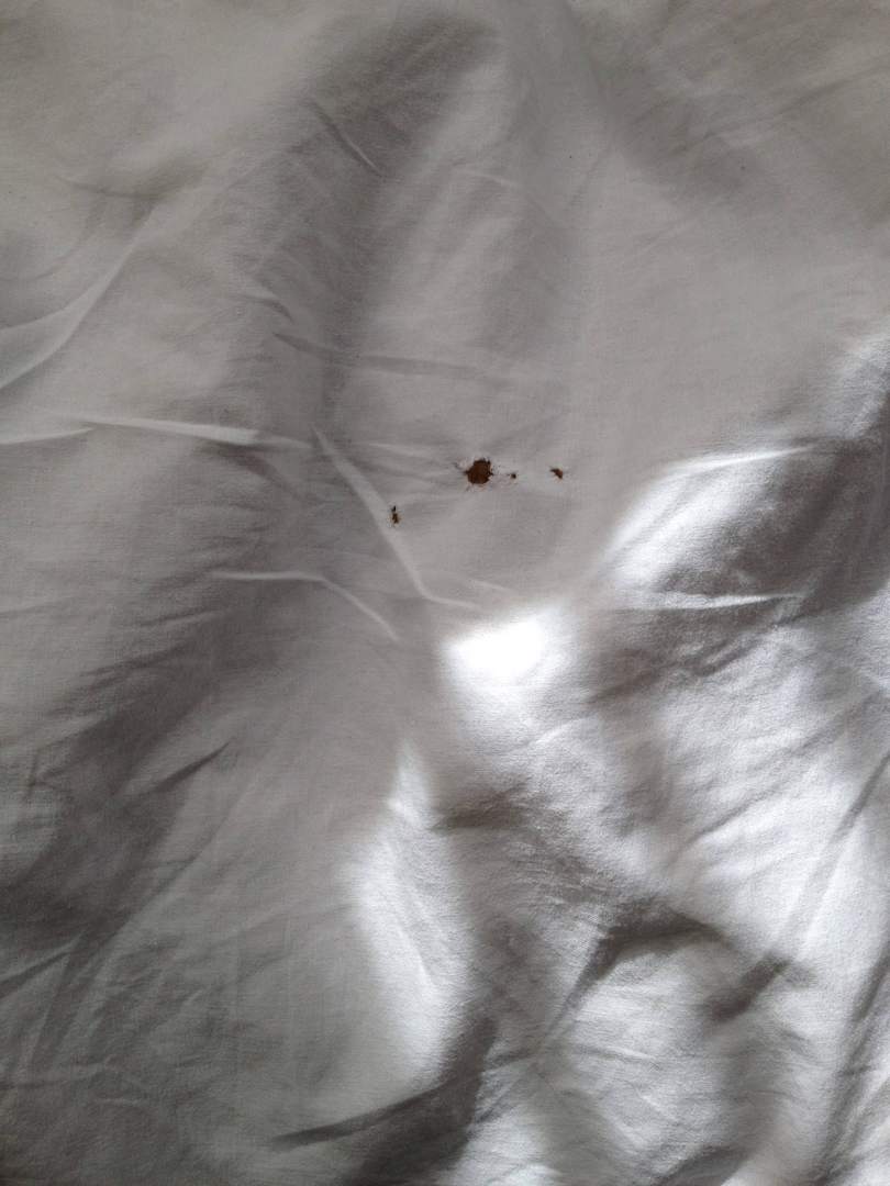 Löcherige Bettbezüge und fleckige Bettwäsche