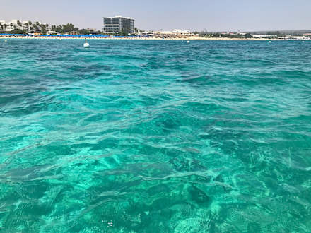 Hotel und Strandabschnitt vom Tretboot aus