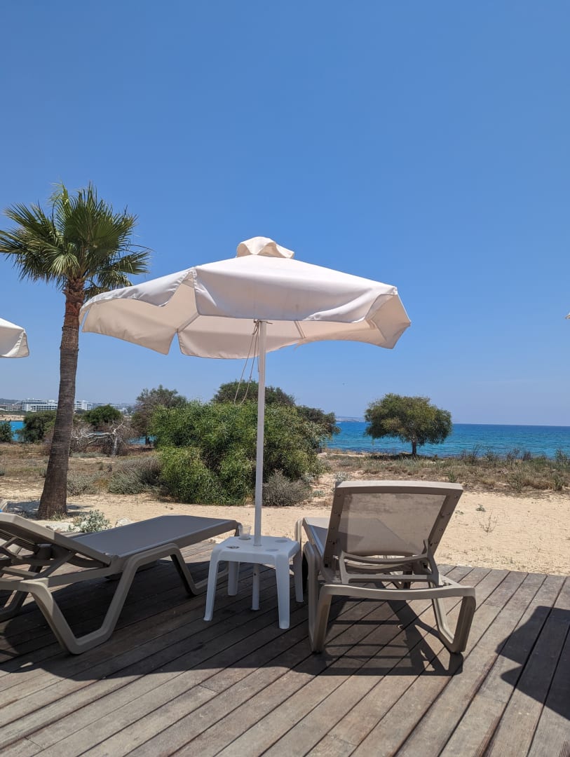 Ausblick von den Liegen Richtung Strand