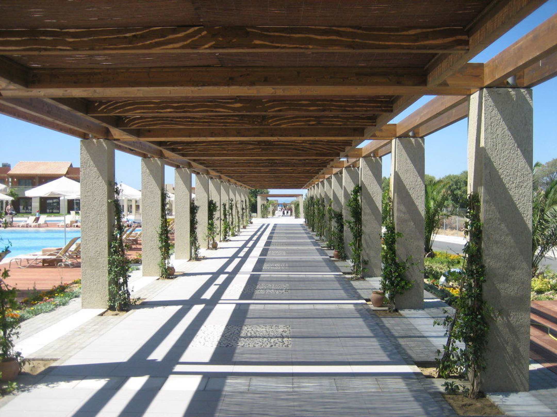 Gang vom Haupthaus zum Pool
