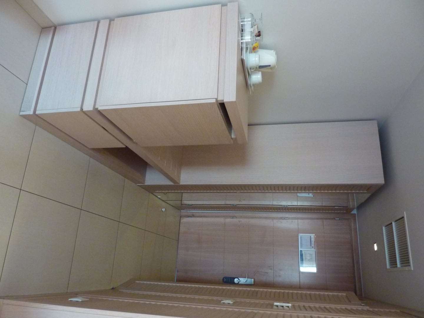 Blick zur Tür, Minibar und Schrank