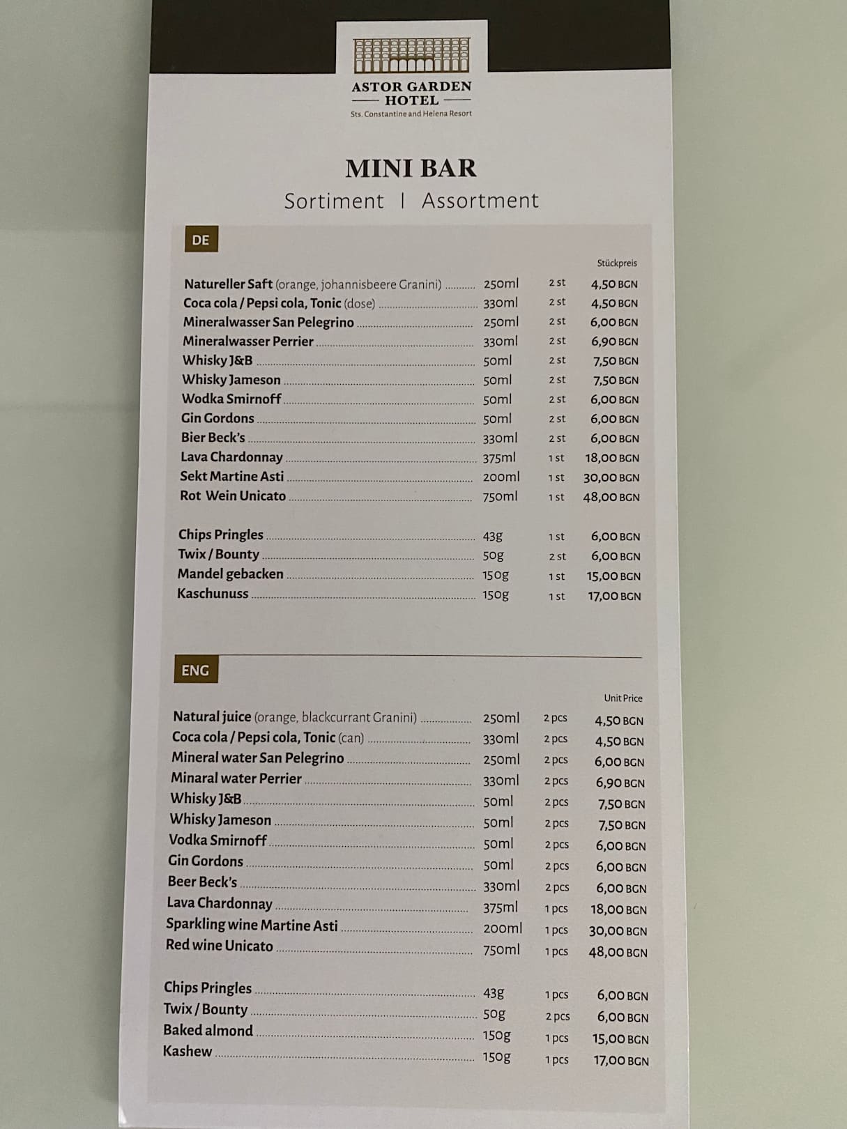 Mini Bar Kosten