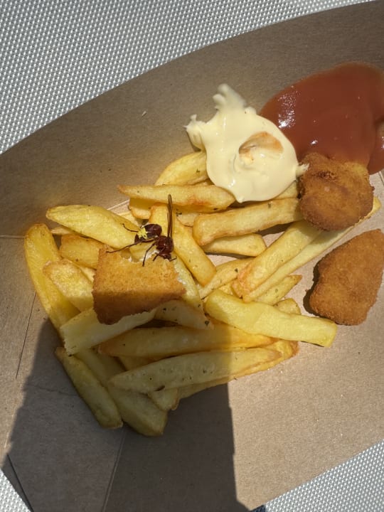 PoolHornissen machen sich über das Essen im Poolbereich her und das Hornissennest im Treppenhaus zu den Zimmern wird nicht entfernt.