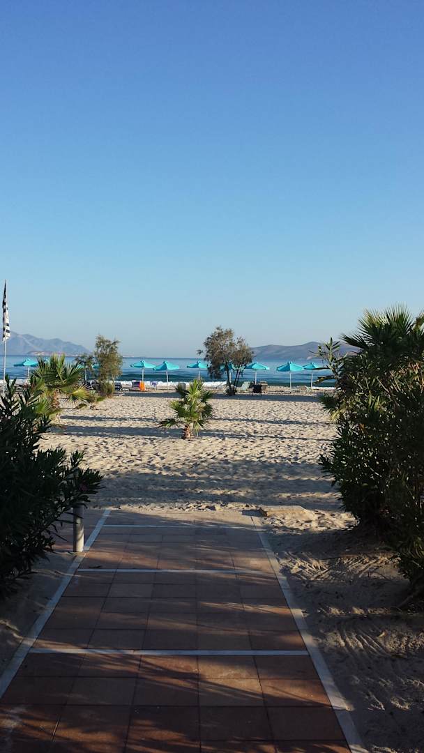 Blick von der Taverne auf den Strand