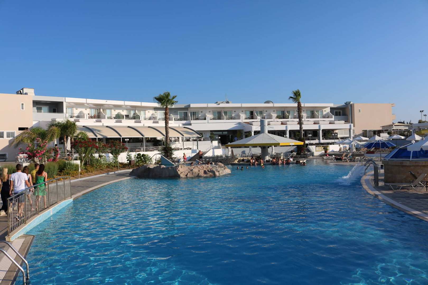 Blick auf den Hauptpool und das Hauthaus
