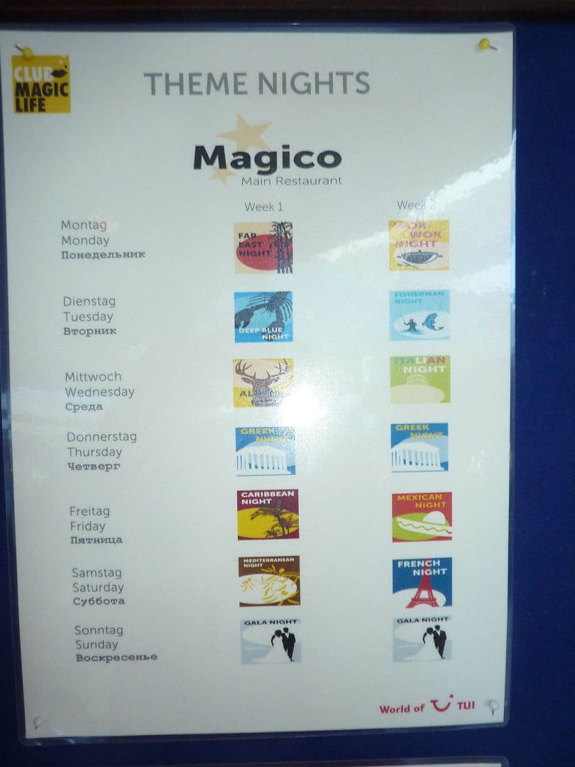 Übersicht der Themenabende im Hauptrestaurant 9/14