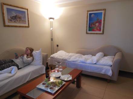 Wohnzimmer mit 2 Betten für die Kinder