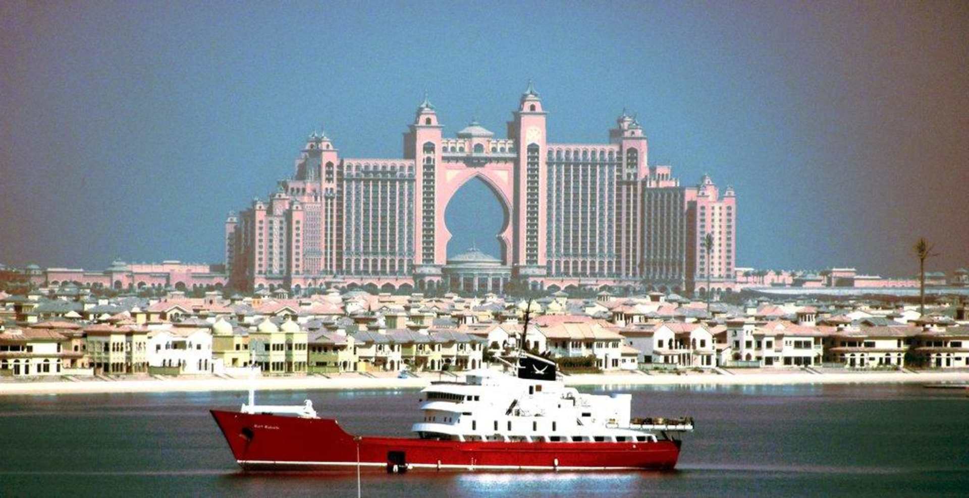 Blick auf das Hotel AtlantisAusblick mit Fernglas auf das Hotel Atlantis(an der Spitze der Palme 4km entfernt)