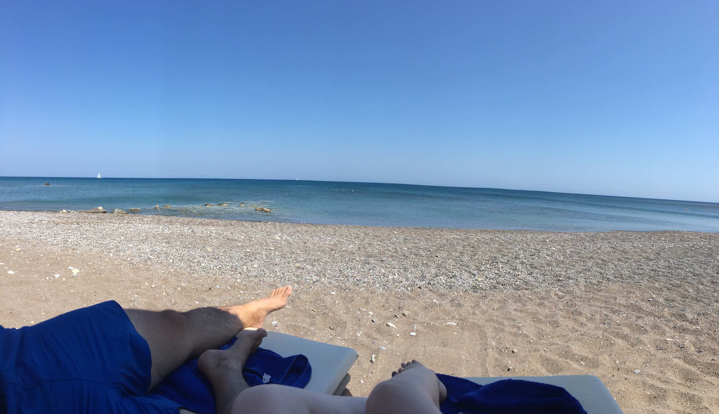 Sandiger und steiniger Strand - Schwimmschuhe zu empfehlen.