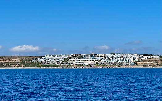 Blick aufs Hotel von Segelschiff
