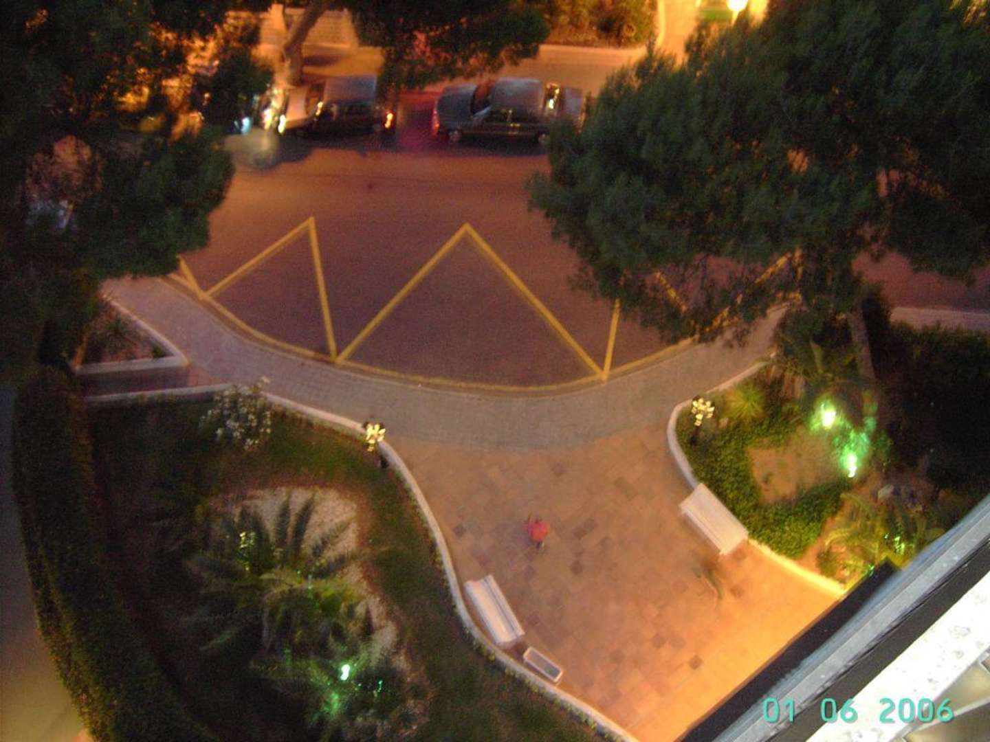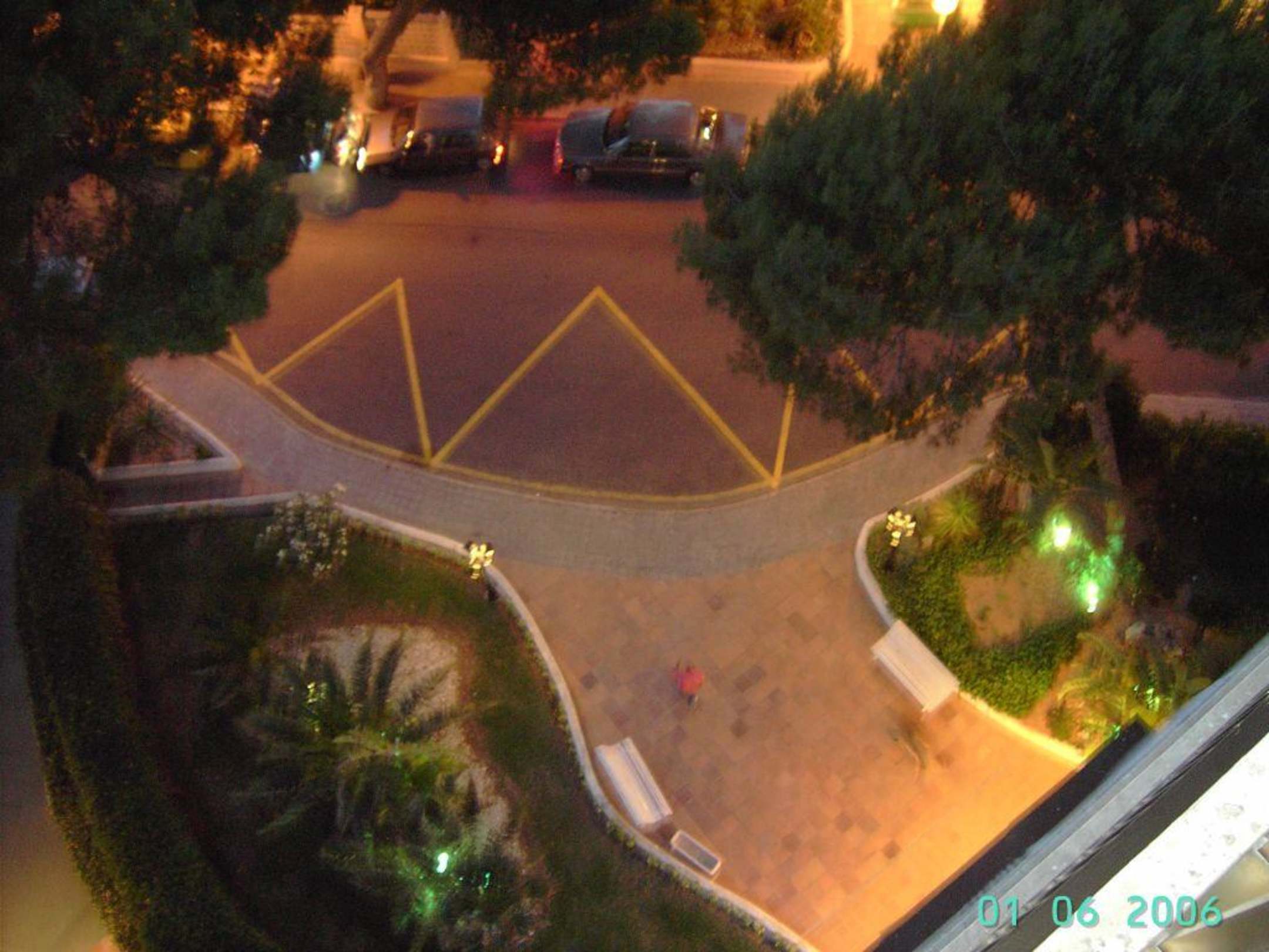 Blick vom Balkon auf den Hotelvorplatz/Eingang