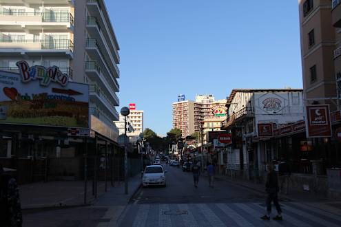 Von der Busshaltestelle aus ganz hinten das Hotel Pabisa Bal