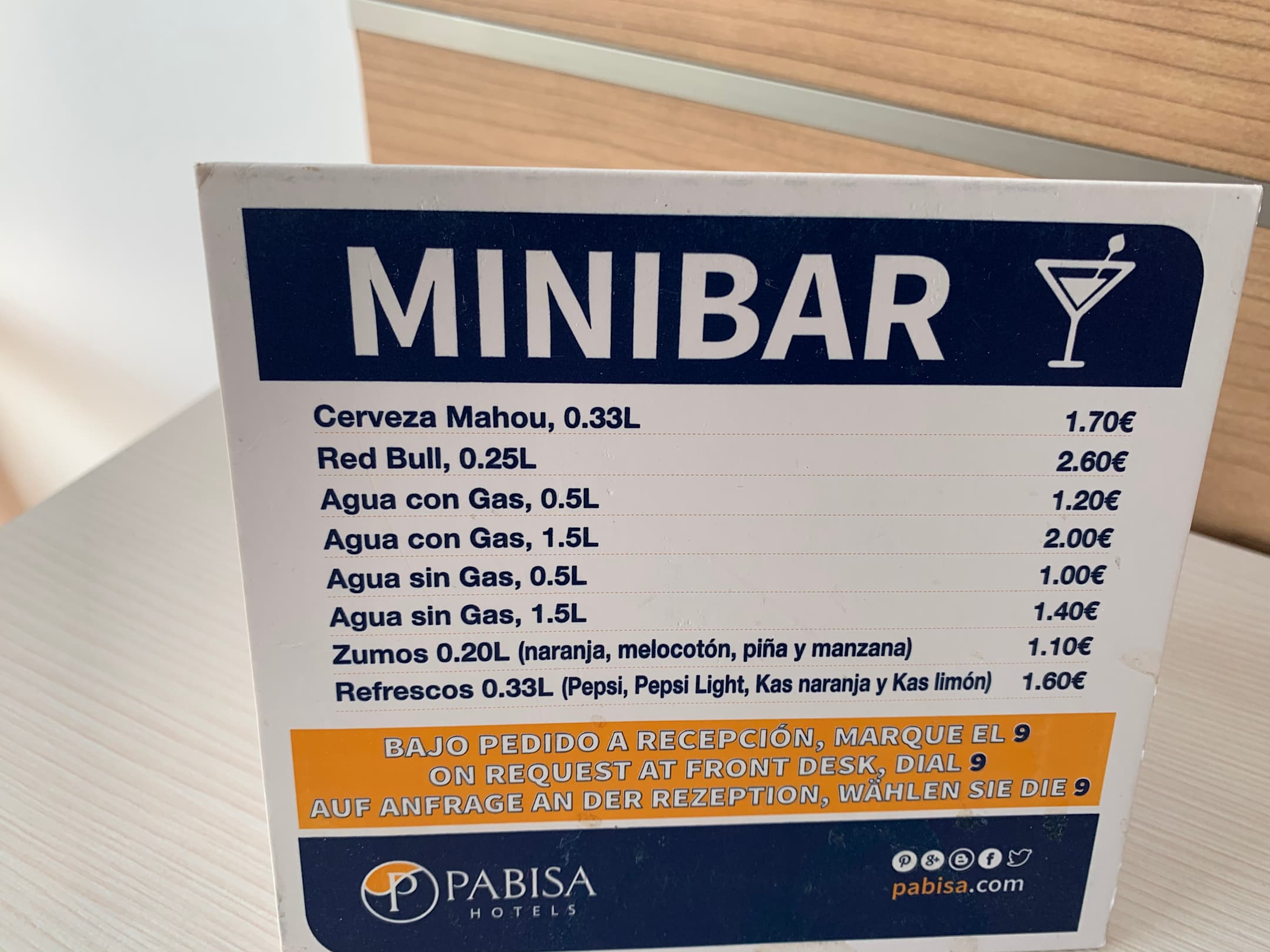 Minibar-Preisliste