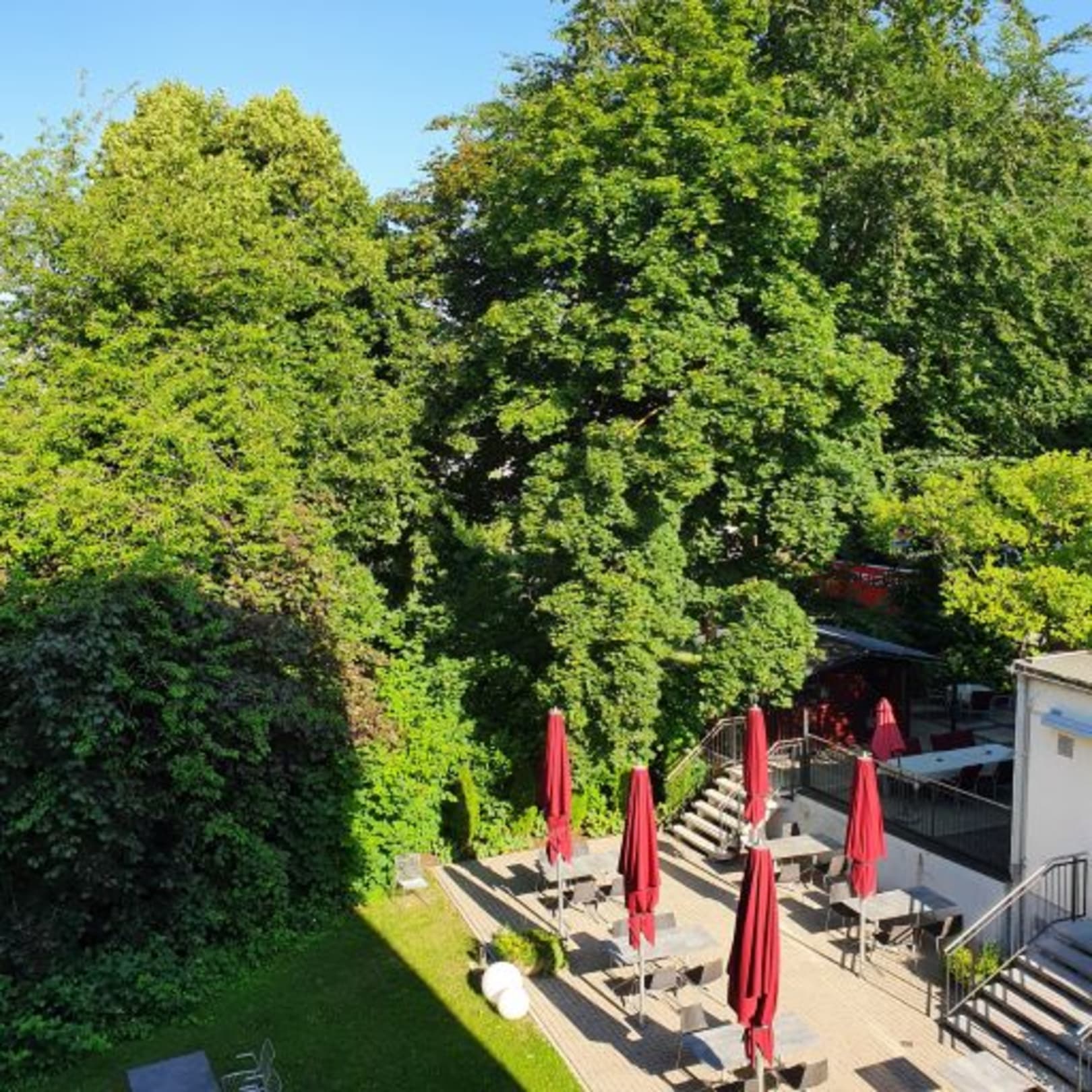 GartenanlageBlick in Richtung Ausfallstraße hinter den Bäumen. Dennoch sehr ruhig.