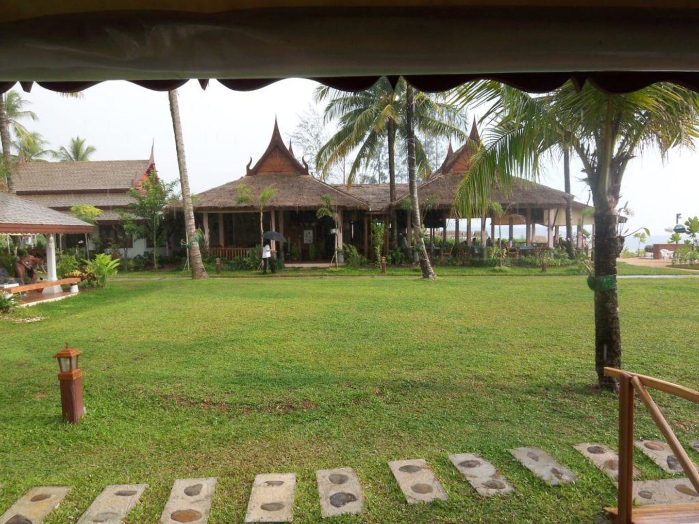 Blick vom Beachfront Bungalow A2 zum Restaurant