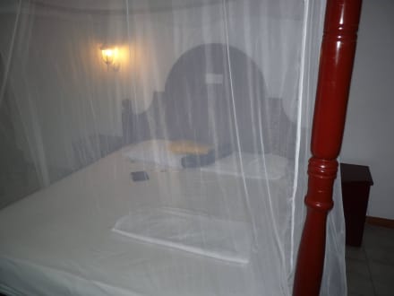 Bett mit Moskitonetz