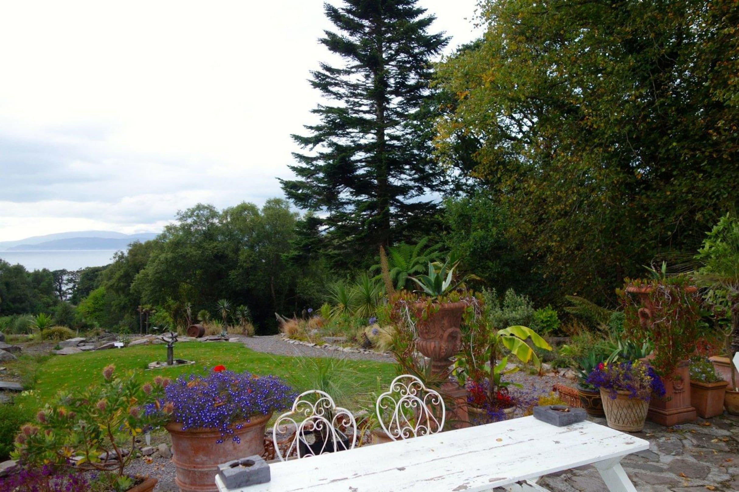 Sitzecke direkt vorm Haus mit Blick zur Bay