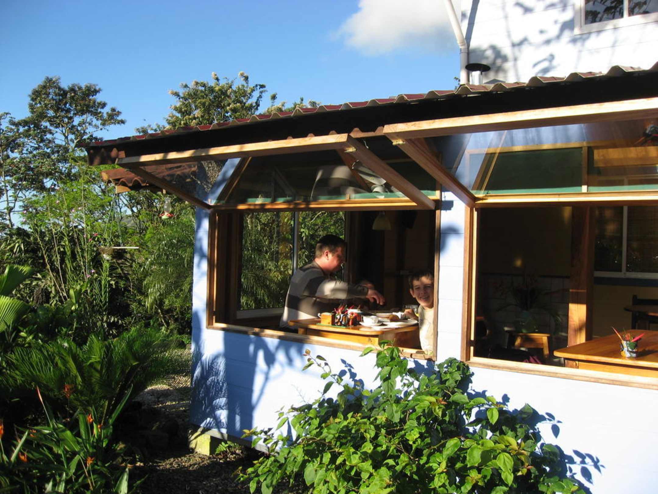 Petit dejeunerpetit dejeuner avec vue sur les nombreux oiseaux qui picorent dans le jardin