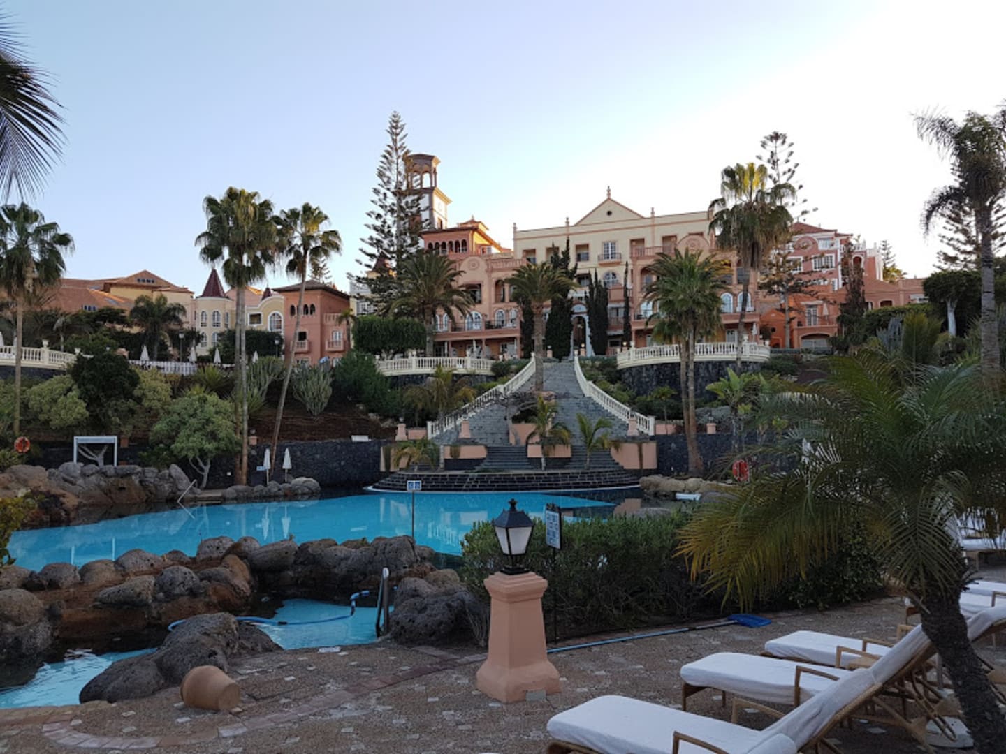 Die prachtvolle Ansicht des Hotels mit der Poolanlage.