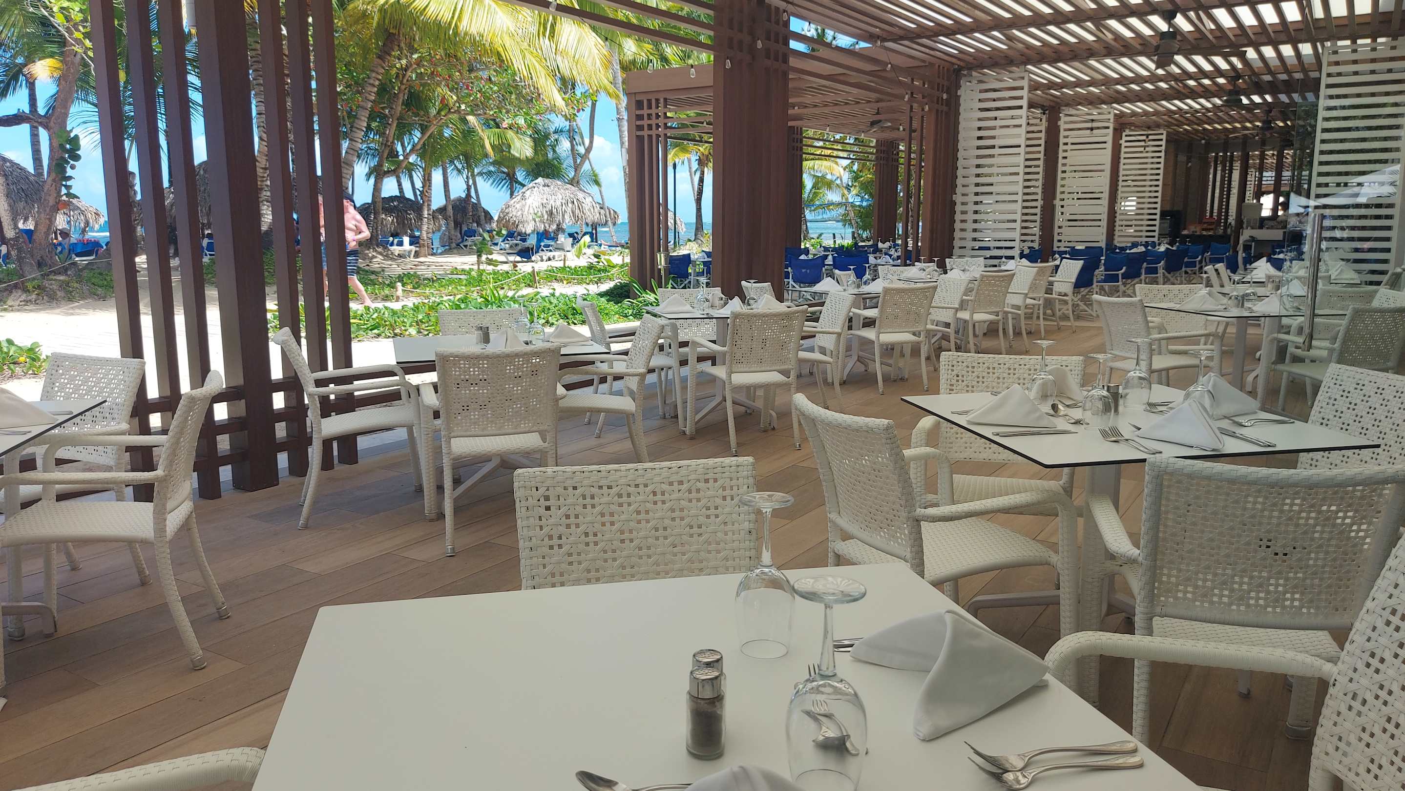 Der Ausenbereich vom Restaurant in Richtung Strand.