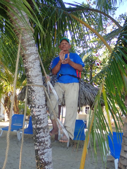 Am Strand, Palmen werden beschnitten