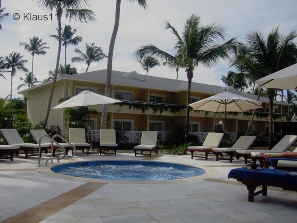 PoolbereichJacuzi mit Blick auf die neuen Gebäude. Diese sind im Strandbereich 2 und im hinteren Bereich (Zufahrt) 3 stöckig.