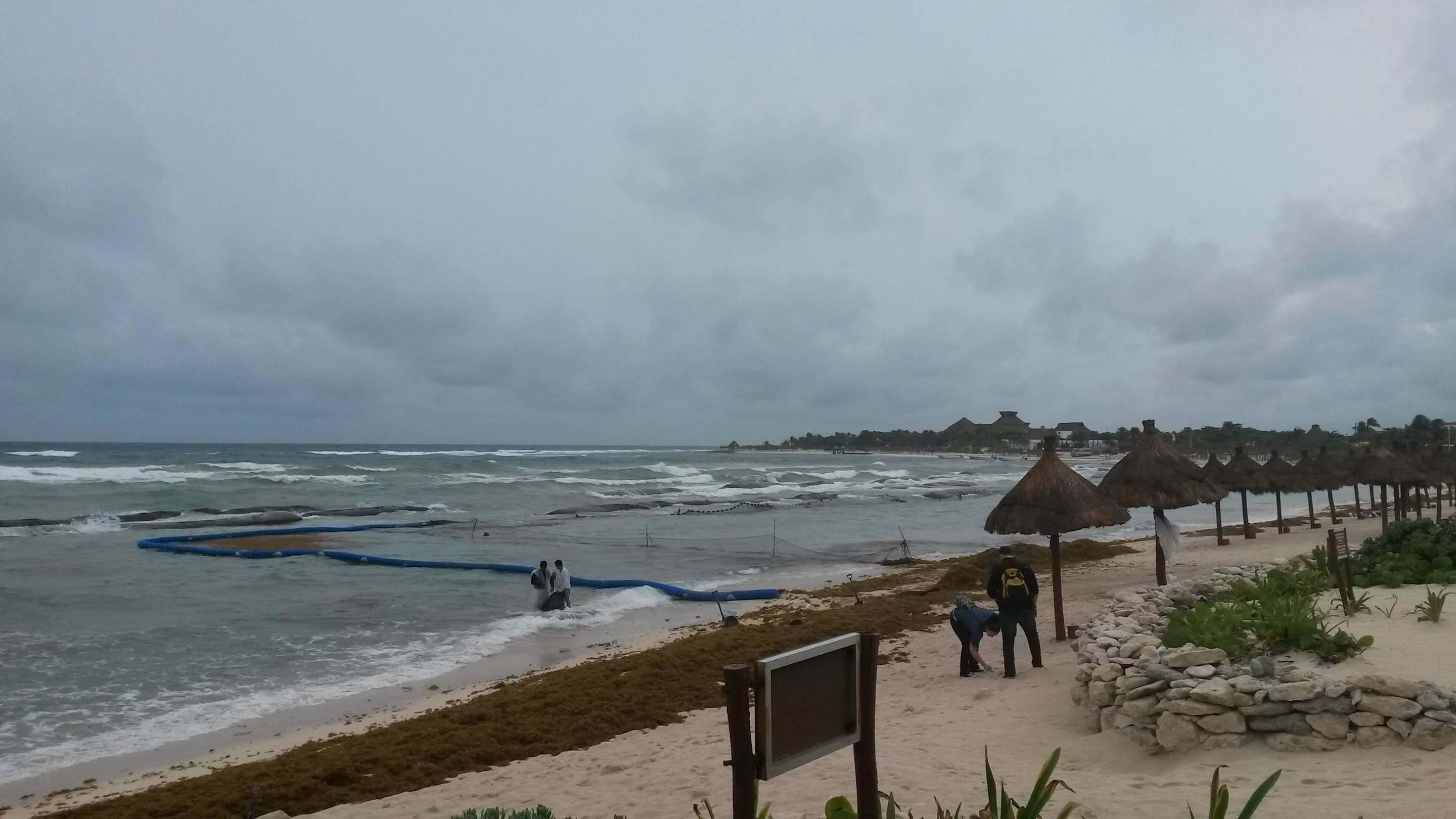 Strand an einem bedeckten TagDie Algenplage an der ganzen Riviera Maya, wie uns ein mexikanischer Gast sagte.