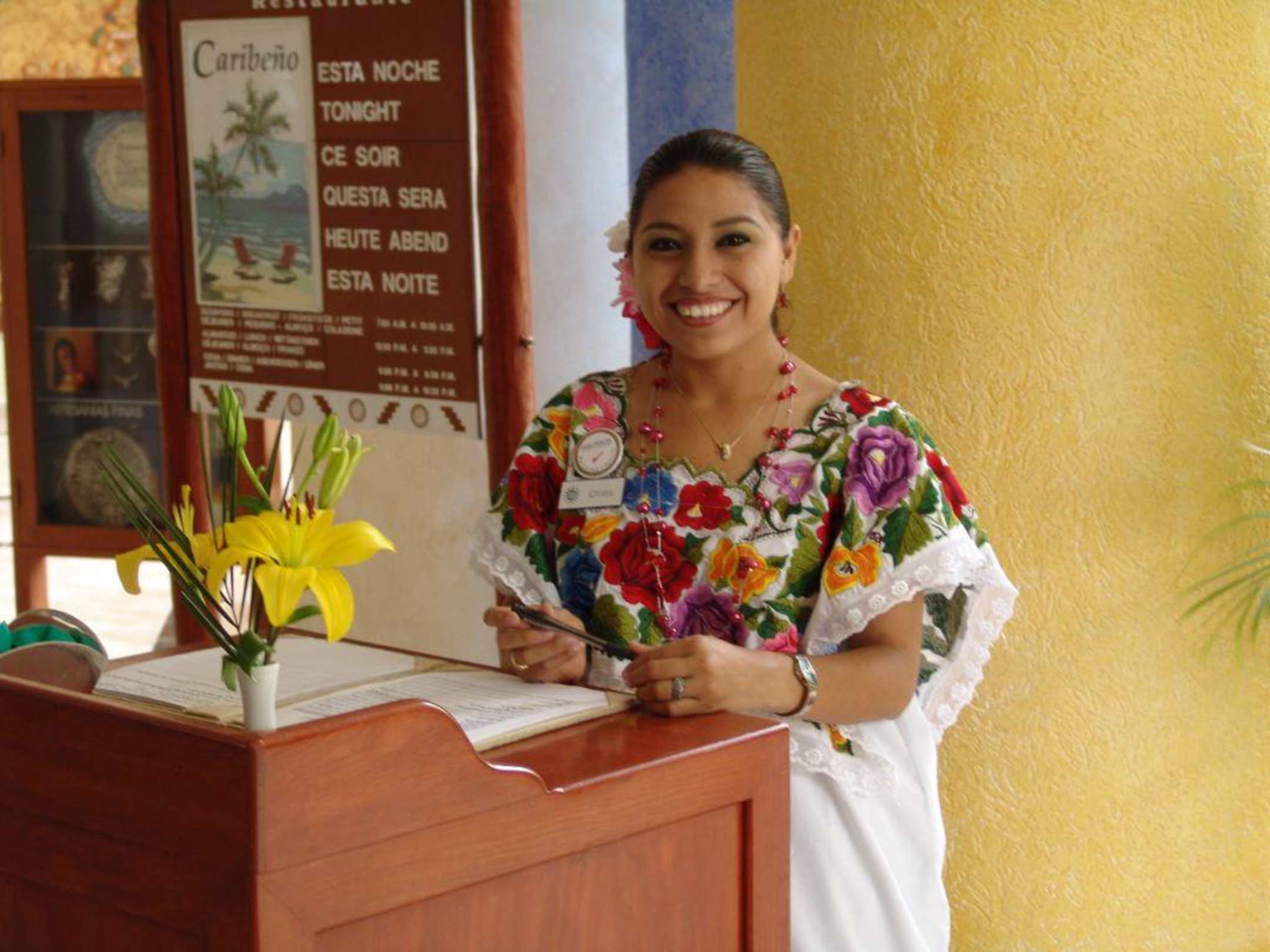 Nette Begrüßung am Eingang des Menürestaurants