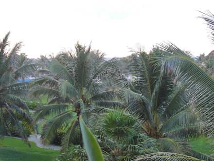 Blick über den Pool zum Meer