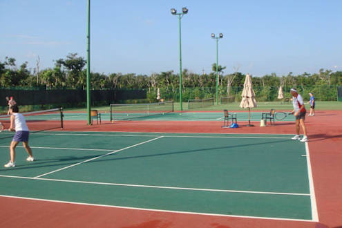 5 Tennisplätze mitten im Dschungel-Vorsicht bei einsetzender Dämmerung,weil die Moskitos dann besonders aktiv werden. Wir haben den Fehler einmal gemacht und sahen im Bereich der Beine nachher gut aus...
