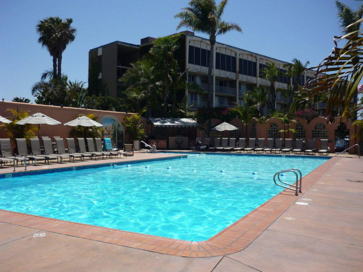 Pool, dahinter erkennbar das Hauptgebäude