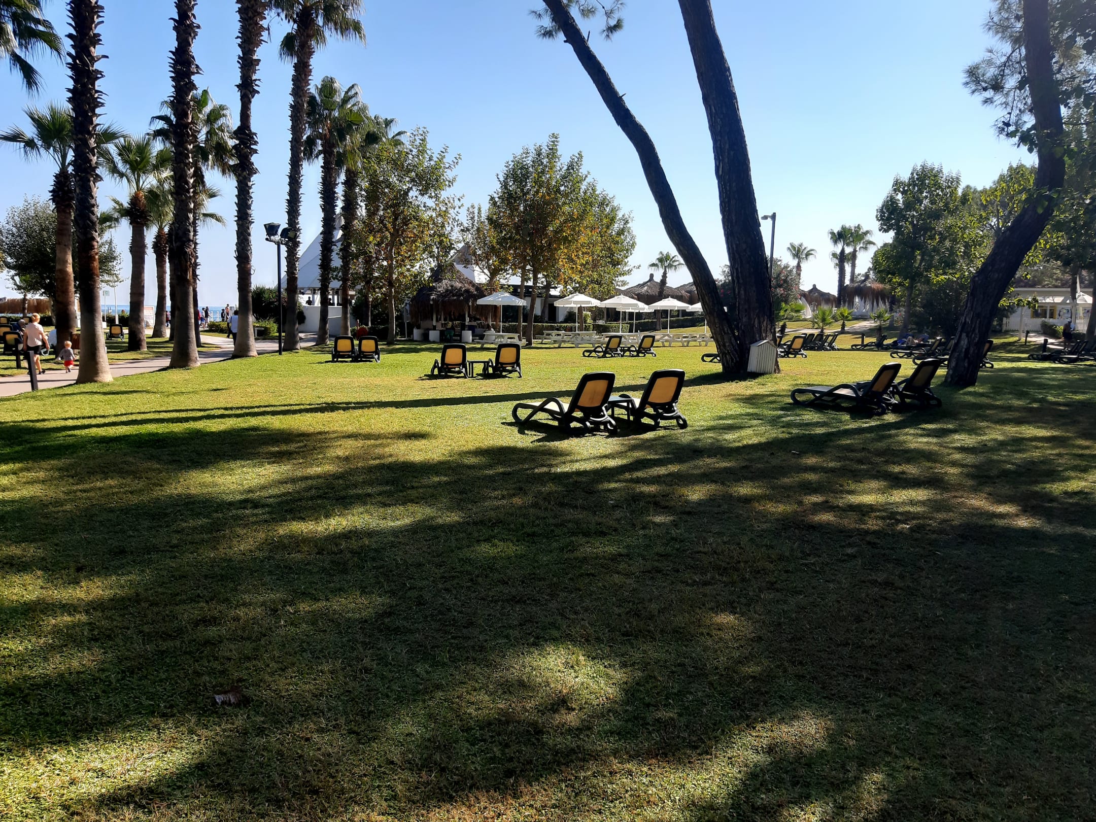 GartenanlageSonnenliegen im Grünen, reichlich und ohne Reservierung. Also "Frühaufstehen" und Badehandtuch dafür unnötig!