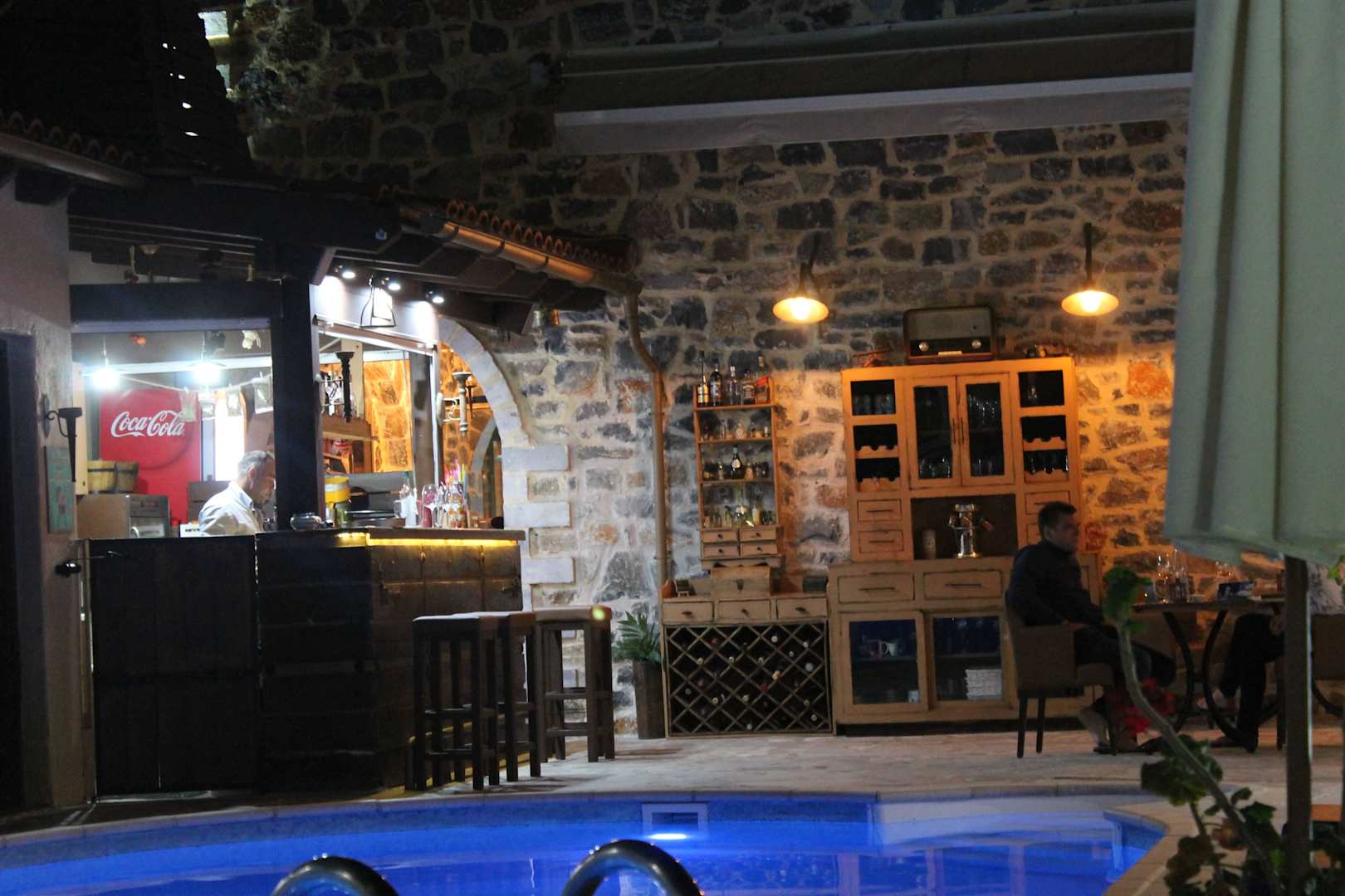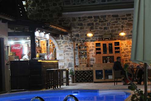 Hof und Pool am Abend