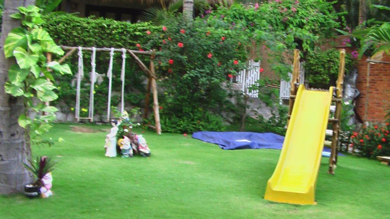 Bedauerlicherweise ist nur für kleine Kinder ( ca. 3 > 5 Jahre ) auf dem Kinderspielplatz einwenig etwas vorhanden . Eine Schaukel + Rutschbahn + Holzwippe + abgedeckte Sandkiste.