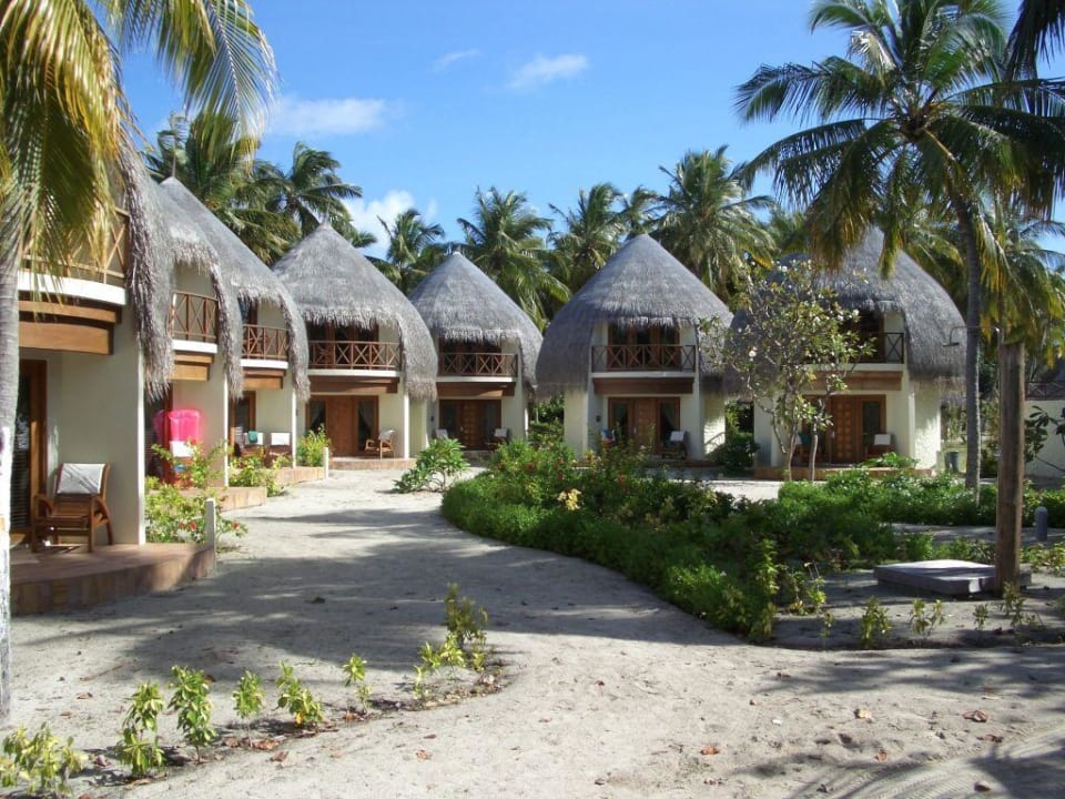 jeweils 5 - 6 Villen sind halbkreisförmig gegenüber dem Strand aufgebaut.