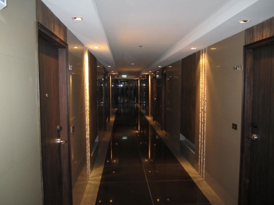 Der Flur des Hotels im 14. Stock