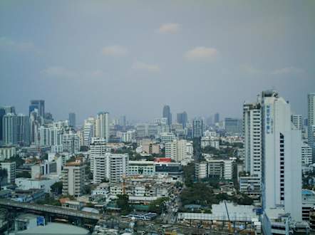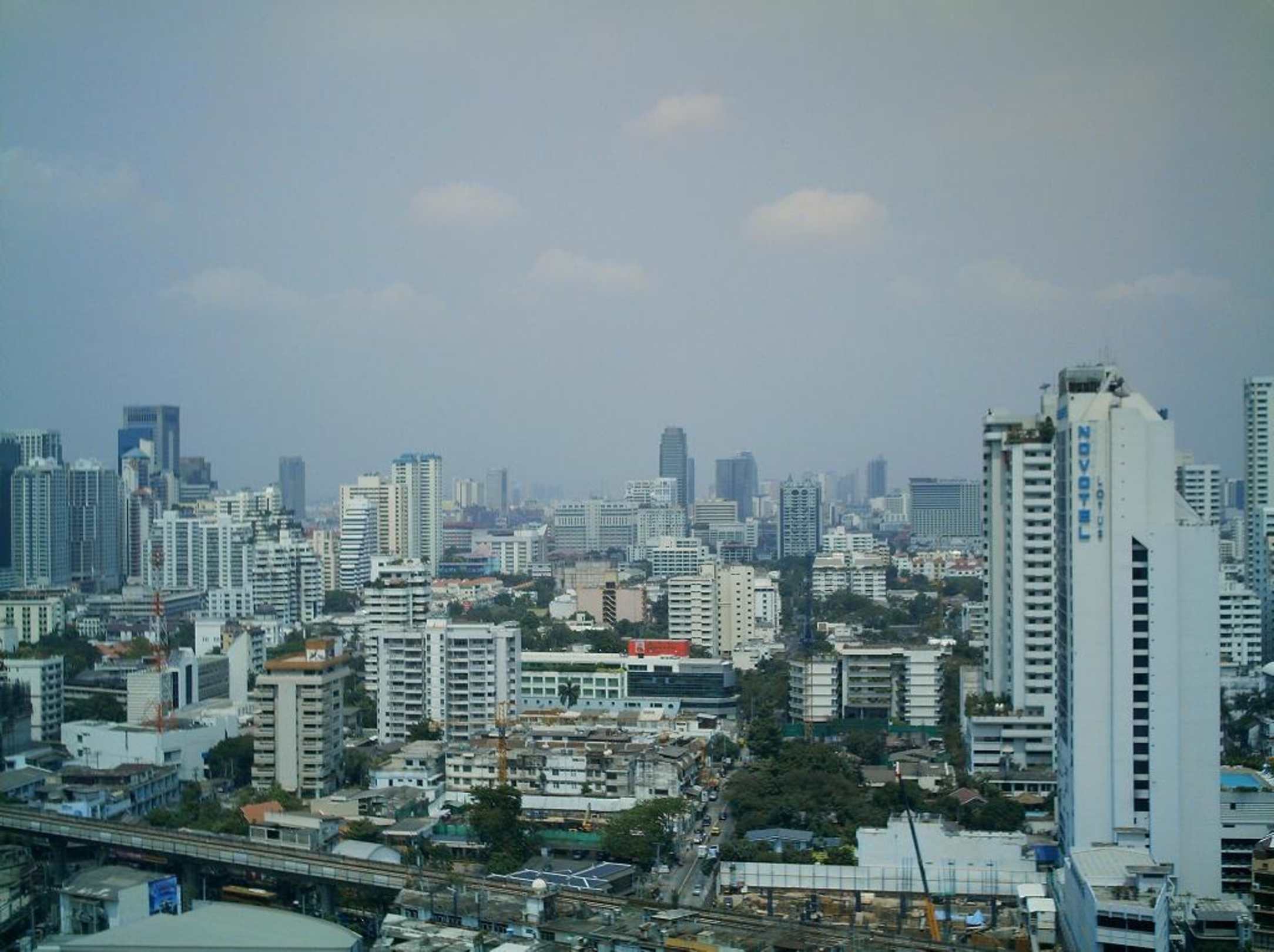 Blick aus der 25. Etage auf den SkytrainBlick auf den Skytrain. Rechts ist sowohl der Benjasiri-Park, als auch die Station Asok.