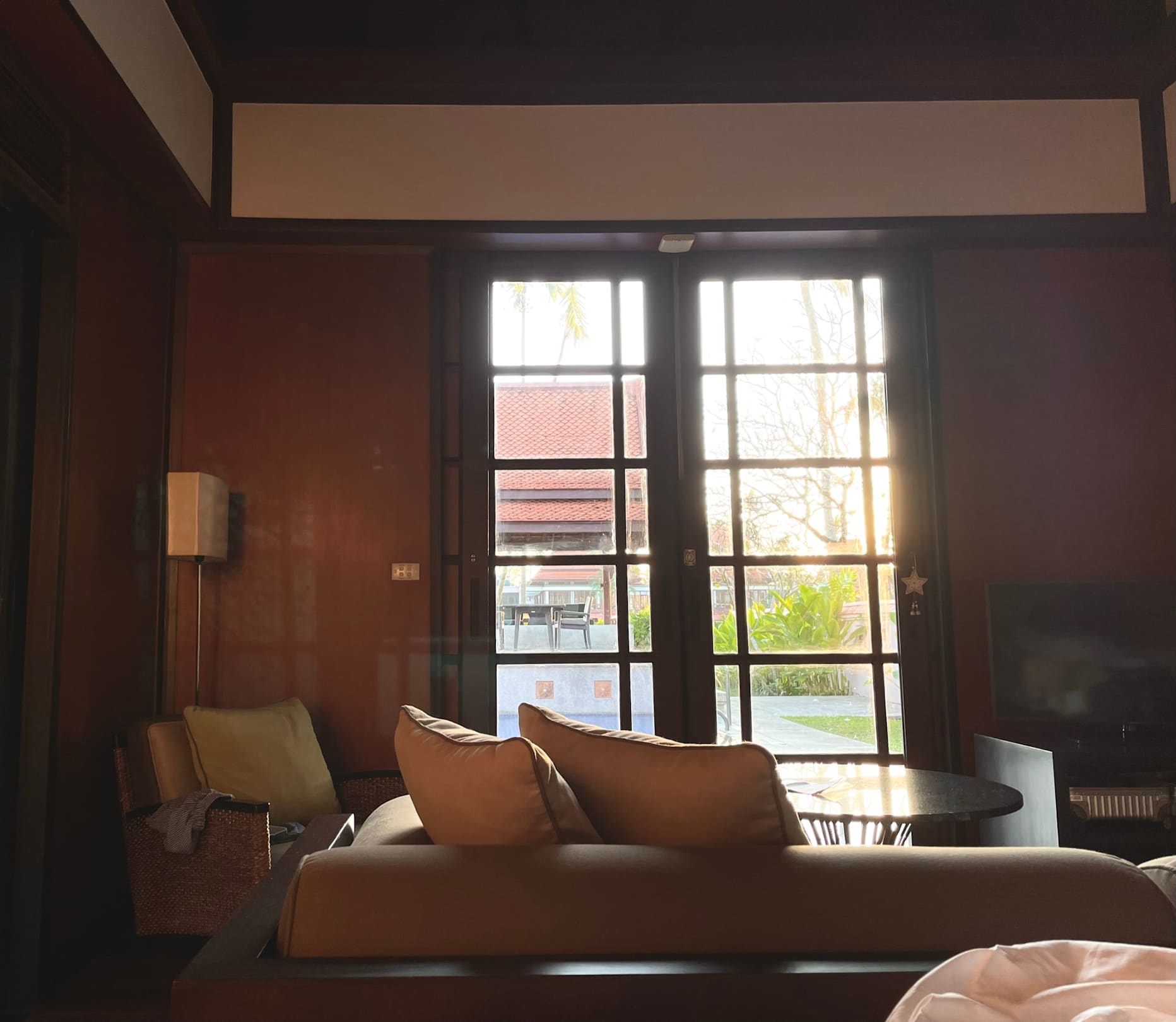 Ausblick vom Bett in den Garten