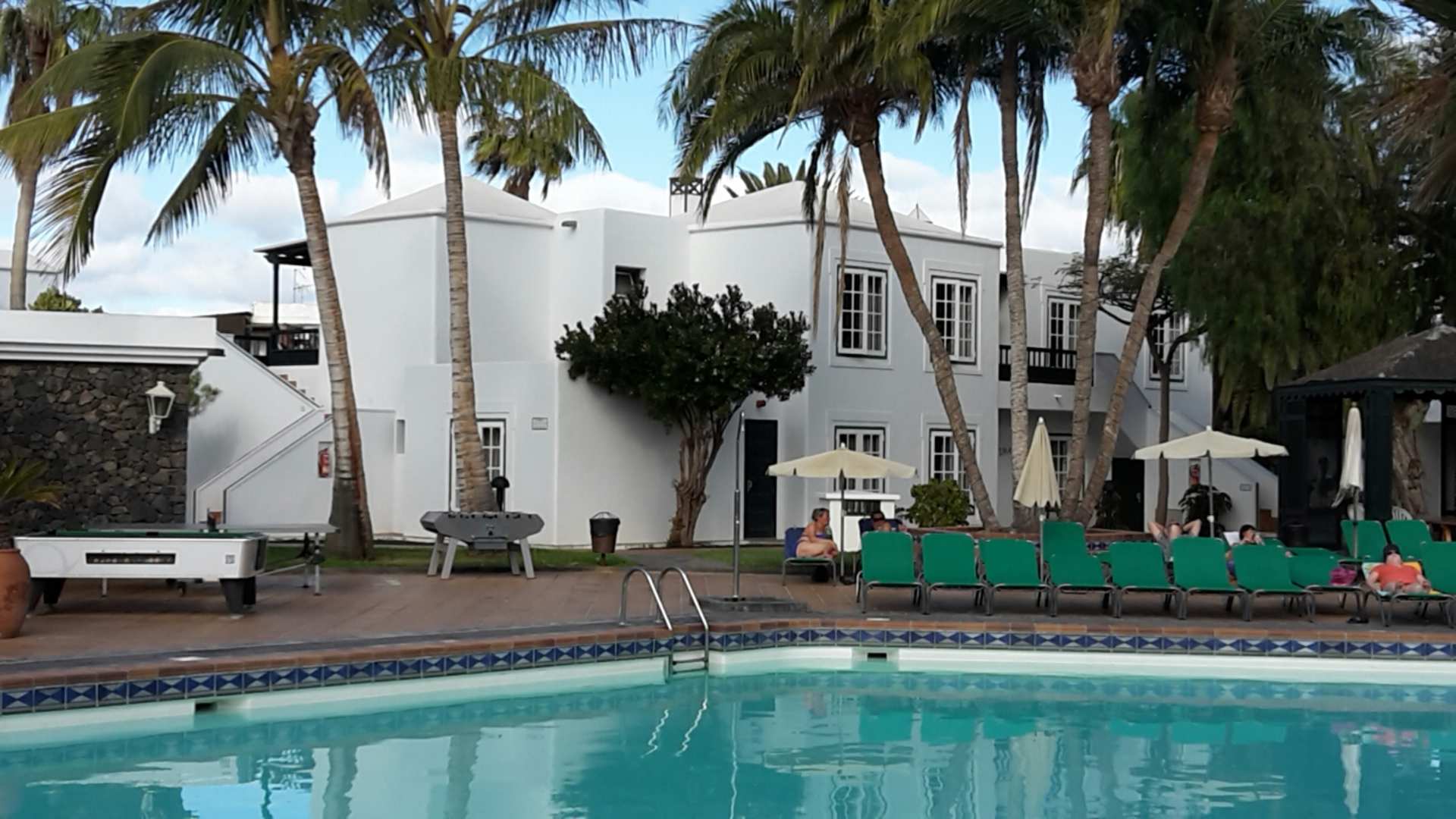 Blick über den Pool zu den Apartments. Reihe i