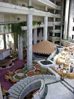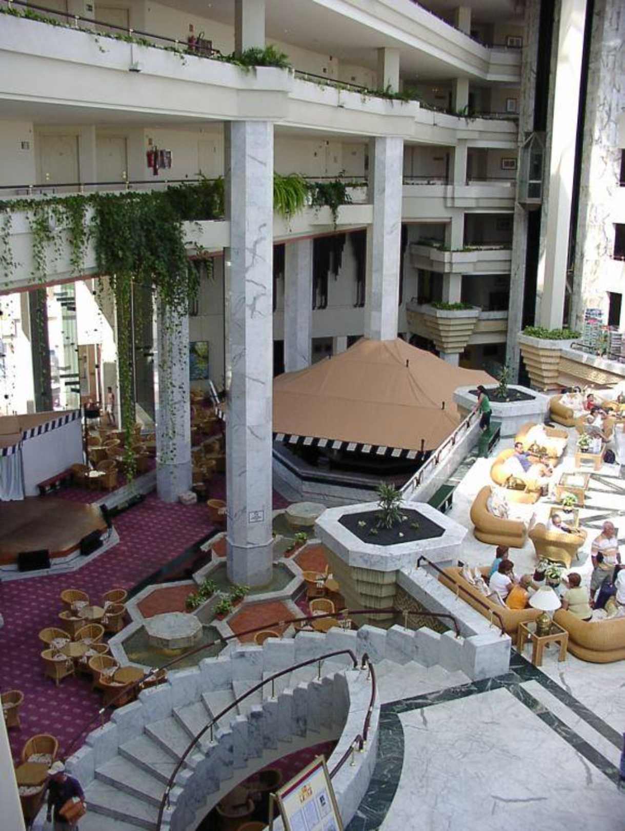 Lobby und BarVon der Lobby geht es eine Etage tiefer zur Bar. Links im Bild ist die Showbühne zu sehen.