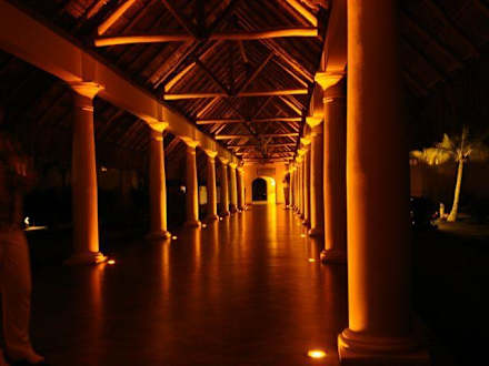 Mit diesem schönen Ambiente wird das etwas höhere Niveau des Palace gegenüber den benachbarten Hotels im gleichen Barcelo Maya Resort unterstrichen. So sehen die Gänge von der Lobby zu den Zimmern bei Dunkelheit aus.