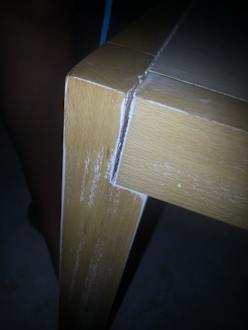 Der kaputte tisch auf unseren zimmer