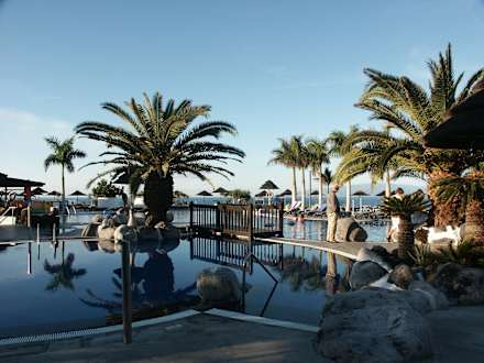 Schöne Poolanlage mit Blick auf das Meer