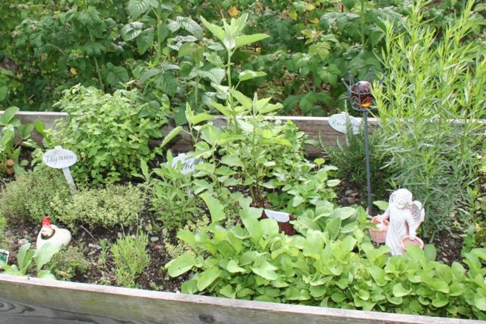 Frische Kräuter zum Frühstück (Frischkäse, Tee)